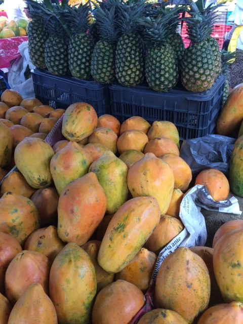 When we lived in Honduras, shopping at the local Mayoreo market was a delicious weekly ritual. I selected fresh locally sourced exotic fruits: pineapples, bananas, avocados, coconuts, mangoes and passionfruit at the open air market. It was fun and delicious. Click here to read my description of the fruit and vegetable sections.